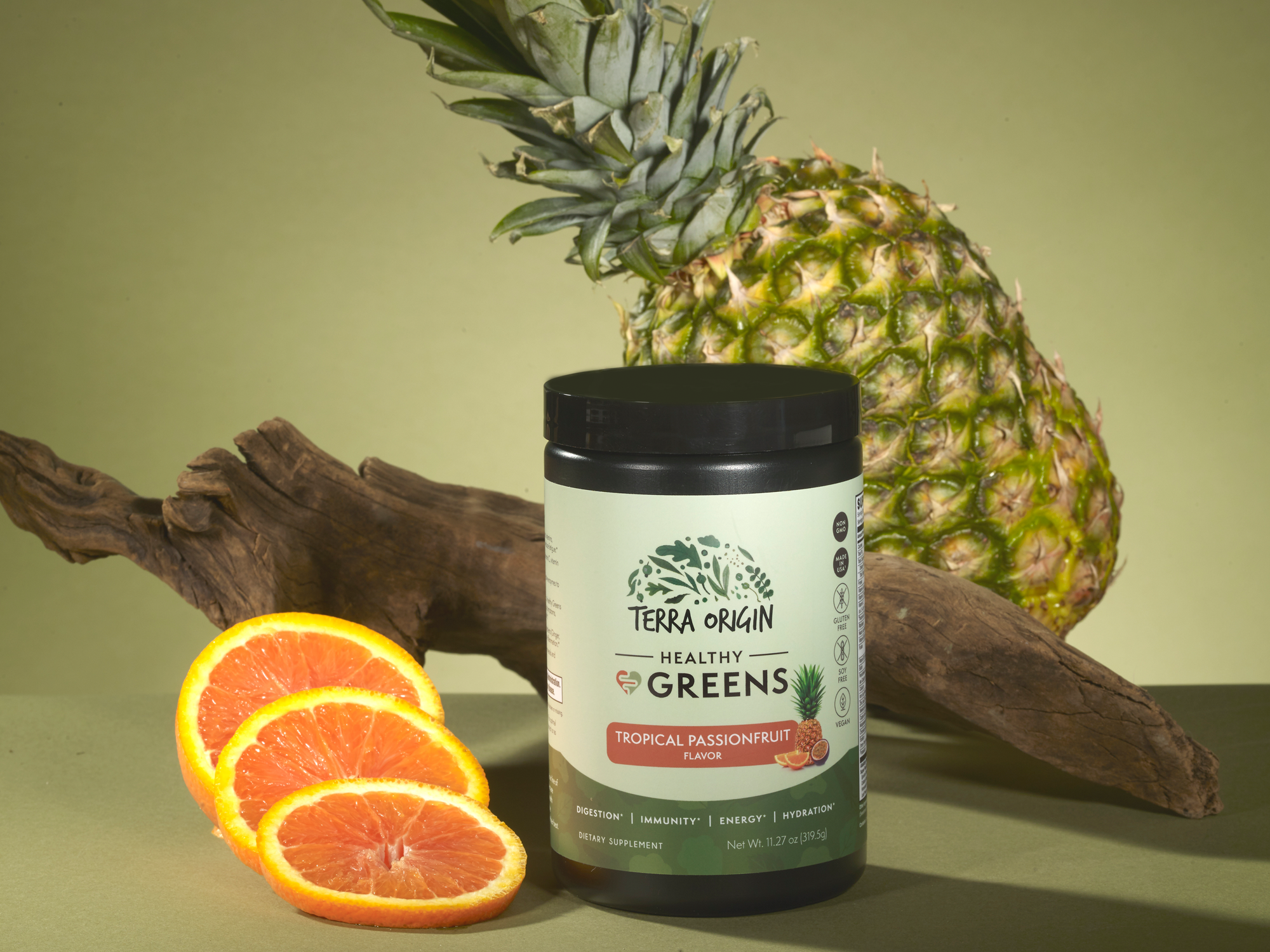 Terra Origin Healthy Greens harnesses the power of over 50 carefully selected ingredients, each chosen for its unique health benefits. From alkalizing greens and antioxidant-rich superfoods to gut-nourishing fibers, probiotics, adaptogens, and digestive enzymes, every scoop delivers a concentrated blend of nature’s most effective nutrients. This synergy of plant-based compounds supports digestion, immunity, energy, and hydration—making it a truly comprehensive daily wellness formula.