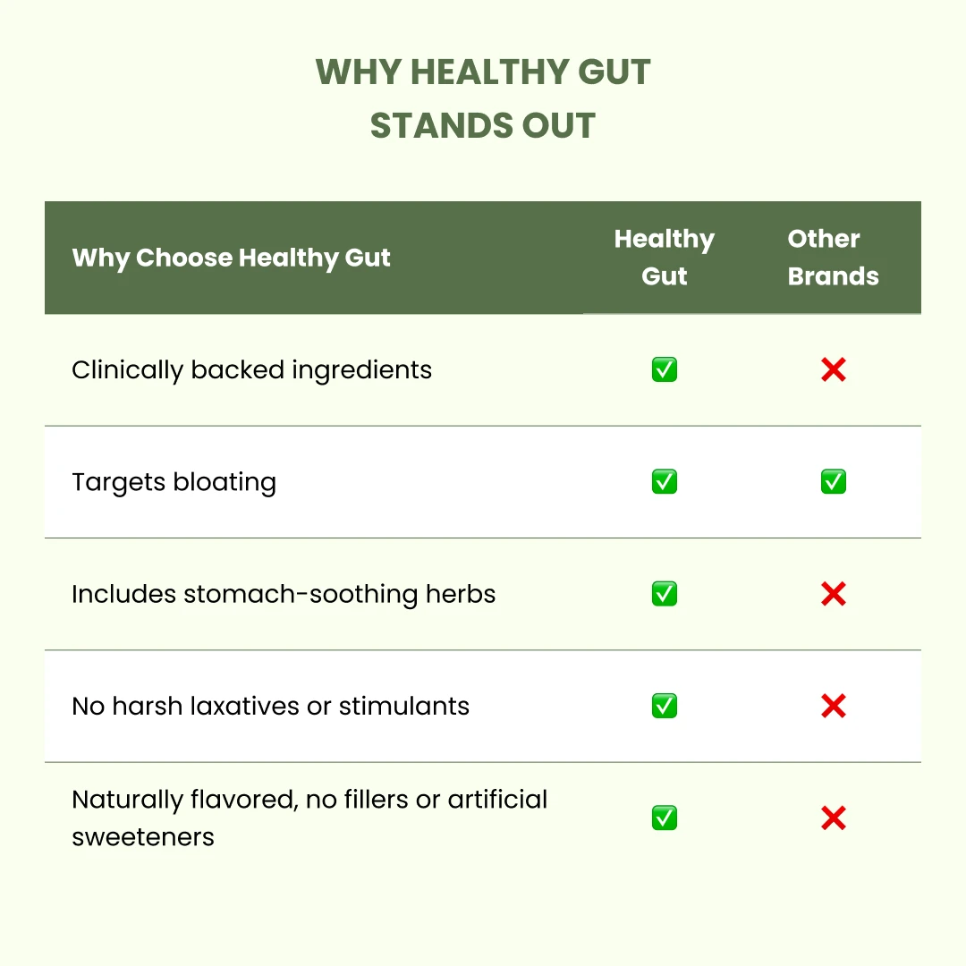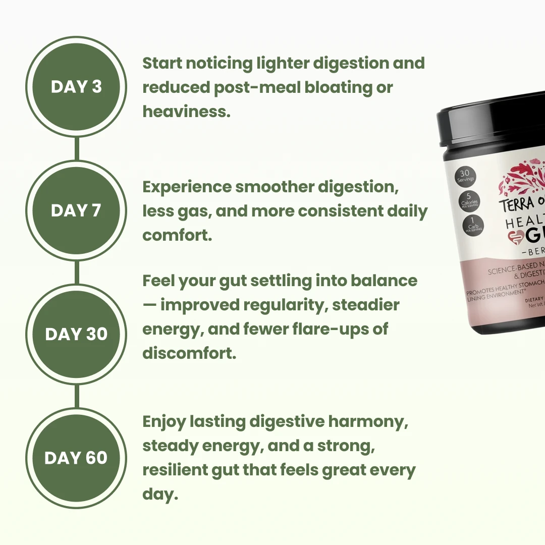 Try Healthy Gut risk-free for 30 days. If you don’t notice smoother digestion, less bloating, and better daily comfort, we’ll refund your purchase — no questions asked.